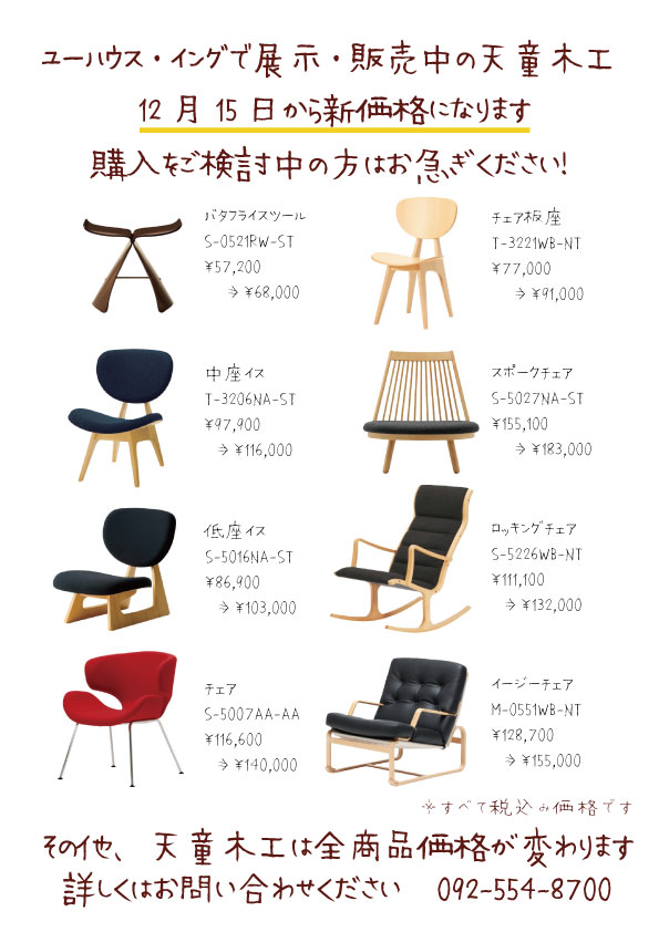 人気の中座イス・低座イス・ロッキングチェアに加えて、スポークチェアなど入荷しています。