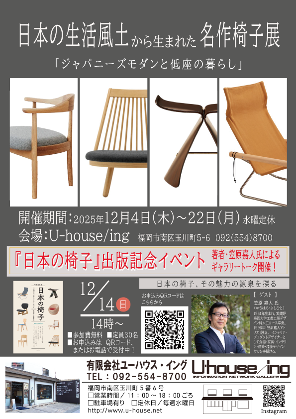 ユーハウスイングでは、12月4日から日本の名作椅子を集めたイベントを開催しております。