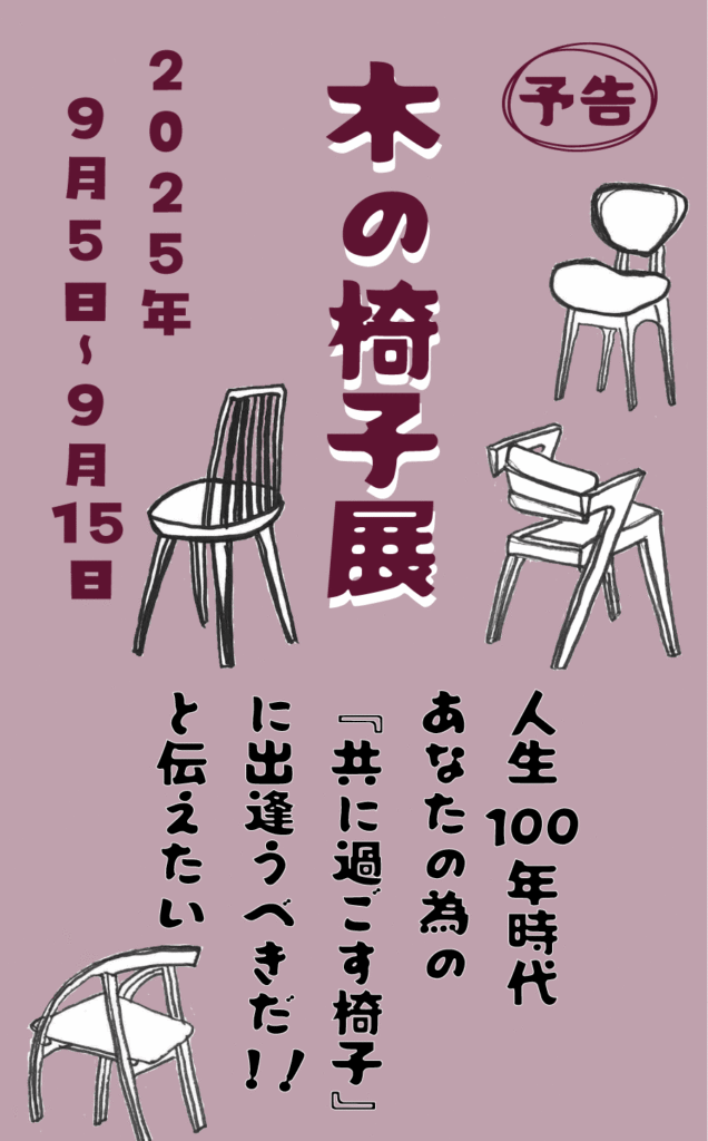 9/5~9/15まで、「木の椅子展」を開催いたしております。