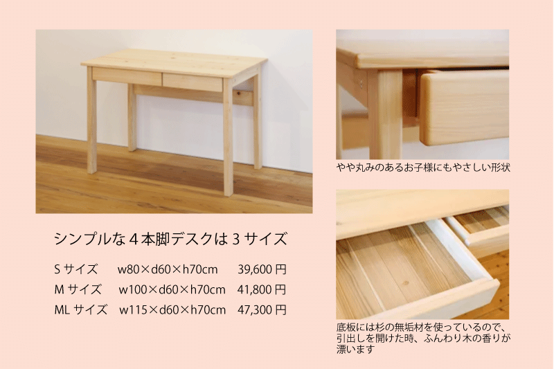 「国産ひのき」で作った、シンプルでお子様にも安全な学習机