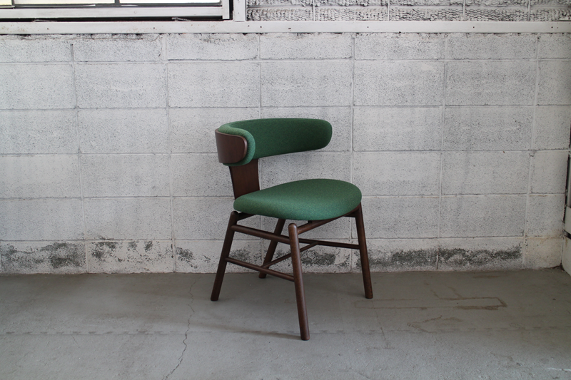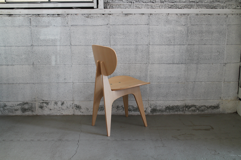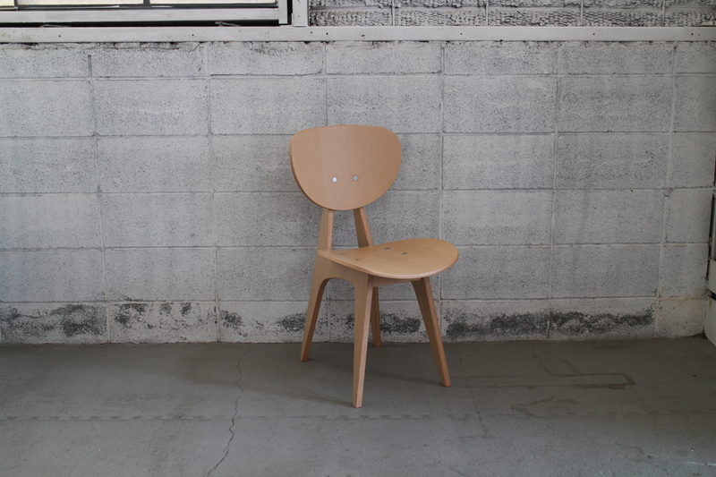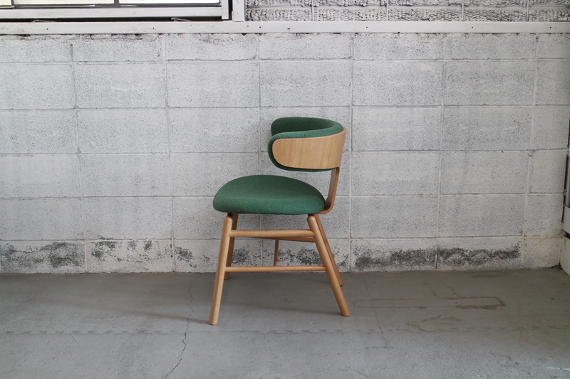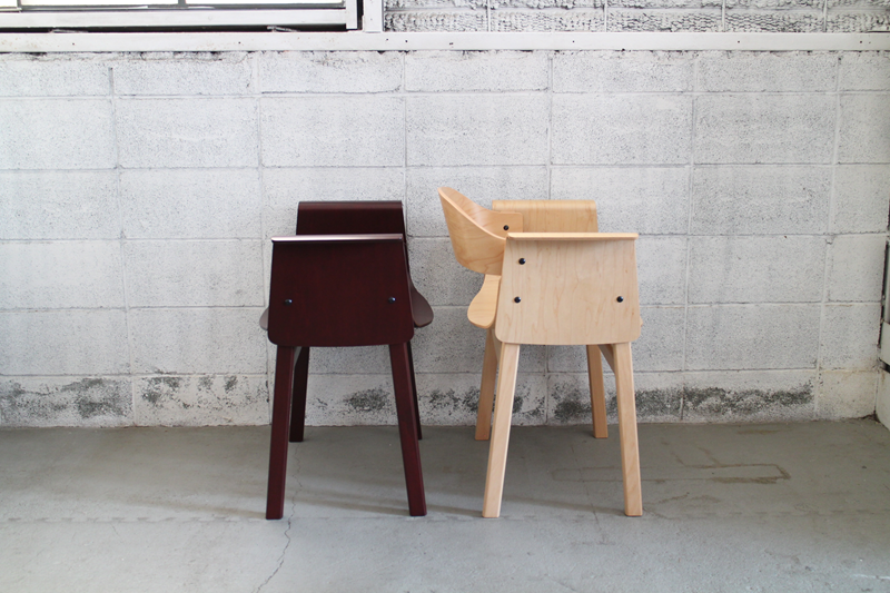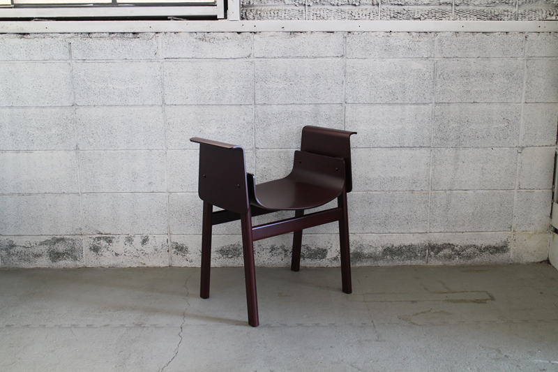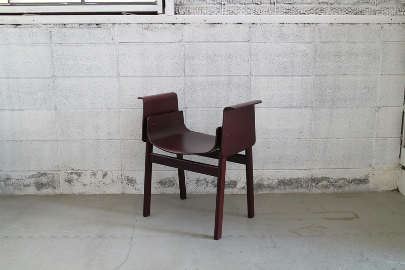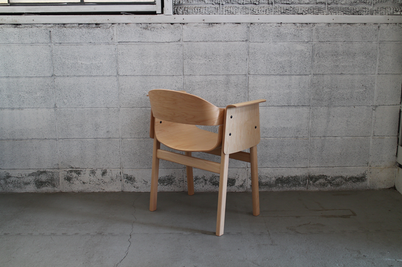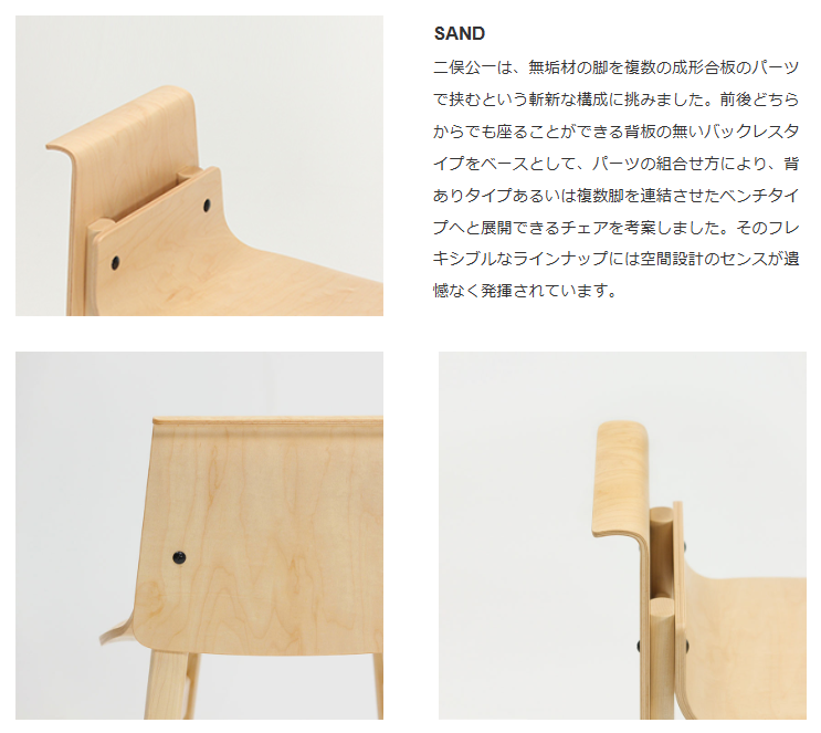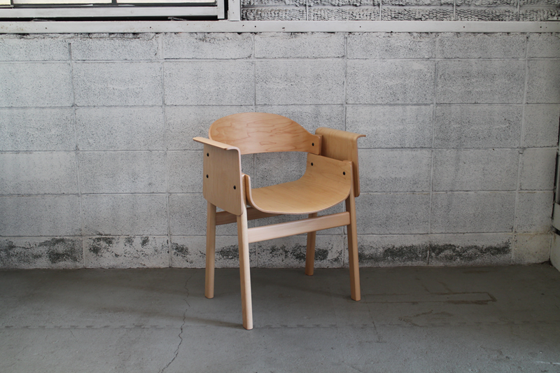 無垢材の脚を成形合板による座面、肘掛け(背もたれ)の各パーツで挟み込み、ボルトで組み上げたシンプルで機能的なシリーズ。