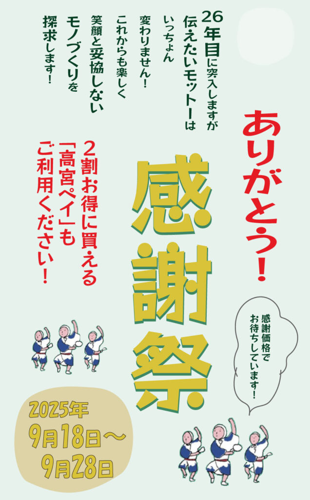 9/18~9/28まで、「26th 感謝祭」を開催いたしております。